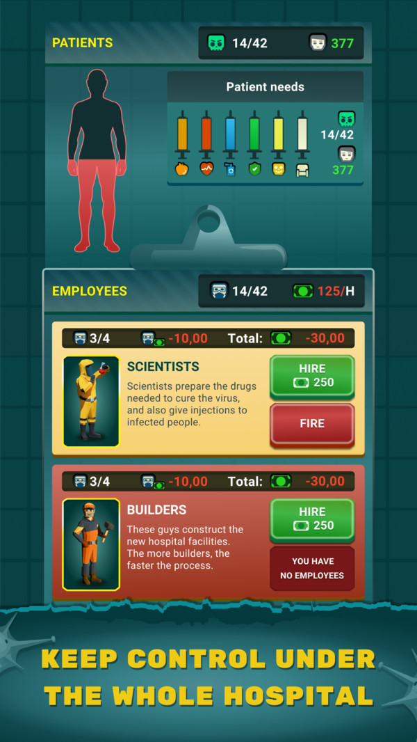 2.深度的游戏玩法:不同于简单的点击与等待,本游戏的经营策略丰富、病例处理复杂,玩家需仔细思考每一步策略。