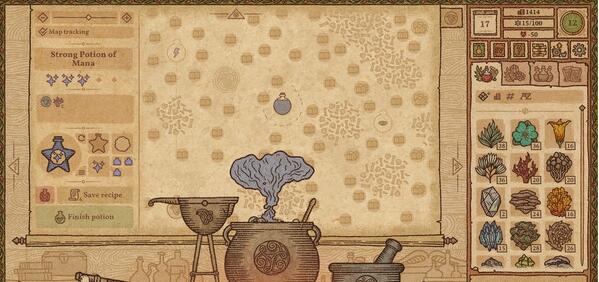 2.角色成长系统:玩家可以通过制作药剂、完成任务升级自己的技能和等级,解锁更多配方和功能。