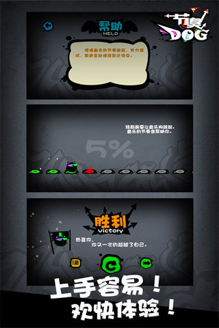 2.音乐与游戏的完美结合:不同于市面上的其他音乐游戏,节奏dog将游戏动作与音乐节拍完美结合,带来全新的游戏体验。