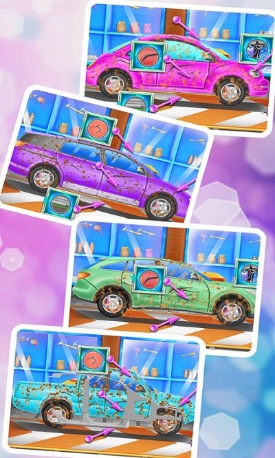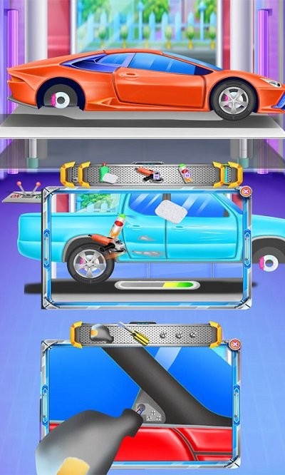 3.丰富的游戏内容:除了基础的清洗和维修,玩家还可以进行汽车改装、喷漆等,通过这些操作提升汽车的价值和外观。