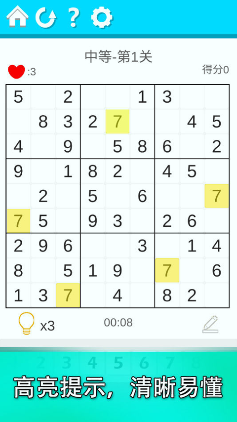 3.教育与娱乐并重通过解数独谜题,玩家不仅可以享受游戏乐趣,还可以锻炼和提升自己的逻辑思维与问题解决能力。