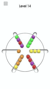 游戏中,玩家面对的是一系列填满了不同颜色圆圈的容器。通过触摸和拖动,玩家可以将一个圆圈从一个容器移动到另一个容器。但这里有个限制:每个容器只能依次放置相同颜色的圆圈,且每个容器的容量是有限的。由此产生的策略性排序过程,是游戏的核心乐趣所在。