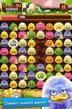 在游戏的玩法上,怪鸭对对碰充分融合了传统消消乐的元素,玩家需要在限定时间内,通过上下左右滑动屏幕,使两个或两个以上相同颜色的怪鸭碰撞,即可消除并获得分数。随着关卡的提升,游戏难度将逐步增加,不同功能的怪鸭也会逐一登场,颠覆玩家的游戏体验。
